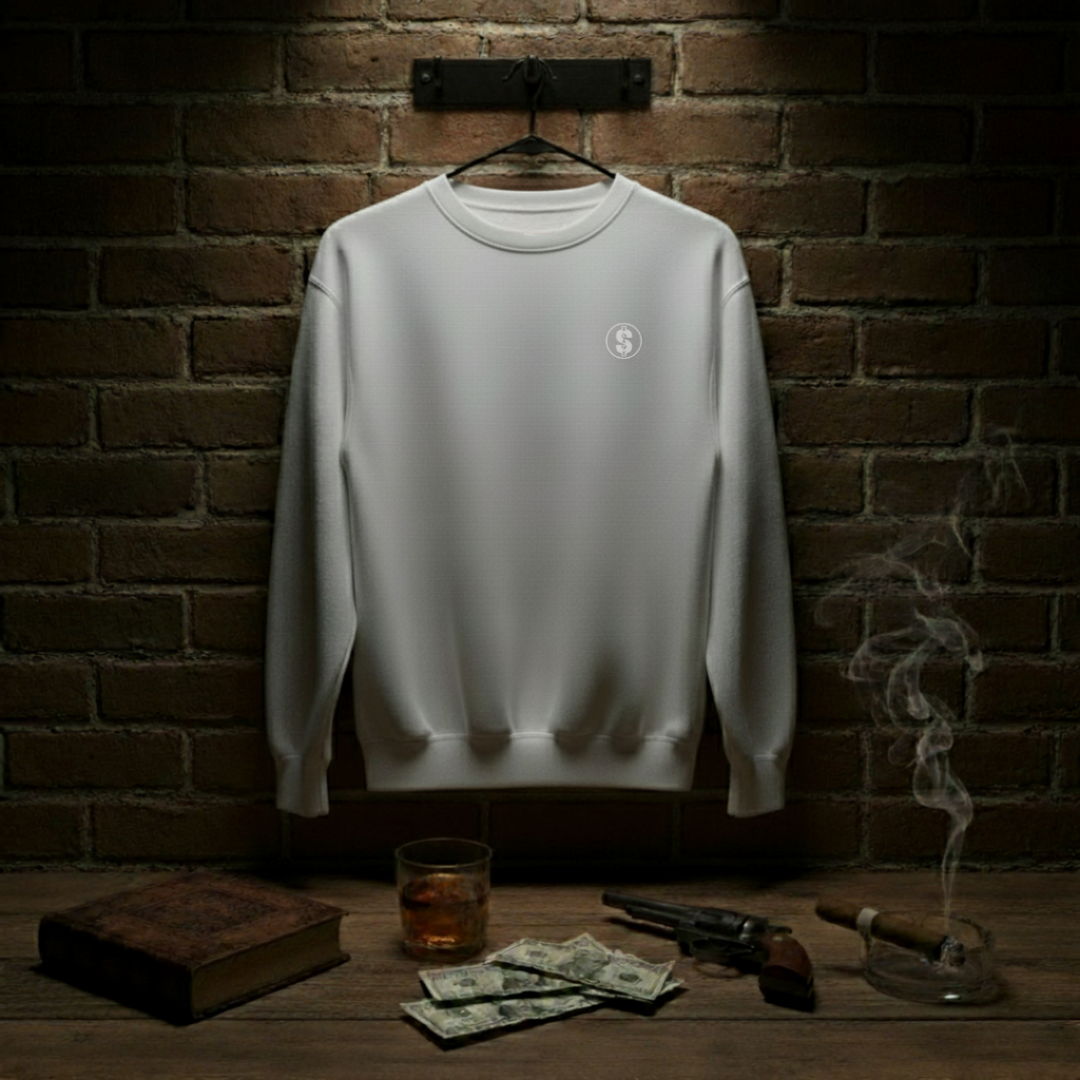 This premium crewneck has the weight and construction you'd expect from a premium heavyweight sweatshirt. It's crafted White on White design with exception attention to detail, from it's reverse cover-stitch, to extra wide 3" cuffs and waistband. The fabric is rotated and cut across the grain to reduce vertical shrinkage and the underarms feature ribbed side panels for a comfortable fit.Â
